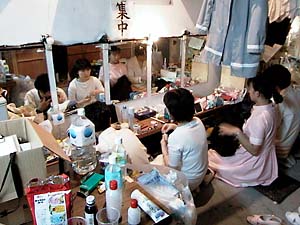 幕開きの近くなってきた楽屋。→ |