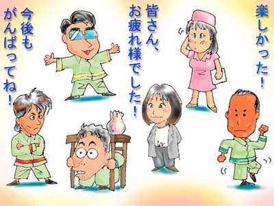 ←お客様のando"WILDER"tetsuoさんから頂いたイラストです。かわいいイラストどうもありがとうございました!それぞれの役者の特徴が的確に捉えてあって見事です。 |