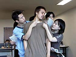 終了後、すぐにビデオを見る。各自の動きや全体の流れなどをチェックする。思っていたとおりに動けていなかったところや、全体のテンポが悪いなど意見がでる。