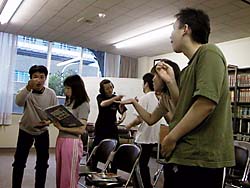 *写真は左から三品、ながとも、江刺、松澤、宮川、沢田。公演に向けての稽古が始まって早2ヶ月。台詞も頭に入り演技も形にはなってきたが、それにつれて演出家の要求も厳しくなっていく。(江平@管理人)