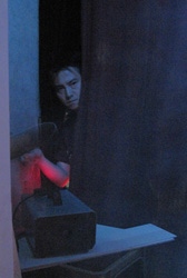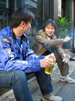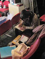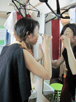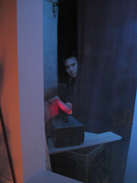 ↑出番以外でも大活躍。スモークマシンのオペレータ等々を務めた多比良。スモークがいい感じに広がるよう、団扇であおぐ。