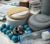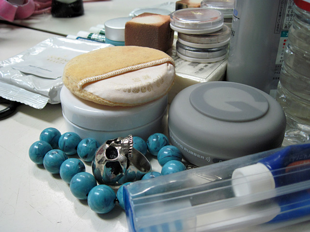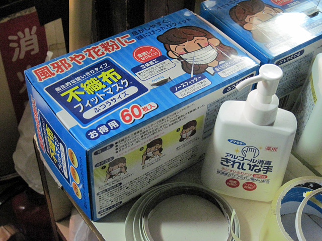 ↑上はインフルエンザ流行中の必需品、使い捨てマスクと消毒ジェル。 下はドレーク船長の鏡前。指輪と首飾りに気づいてもらえたかな?