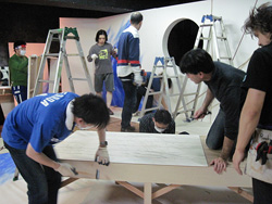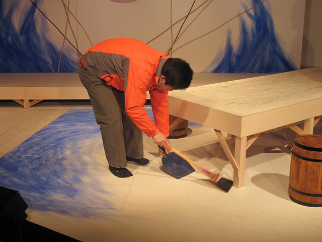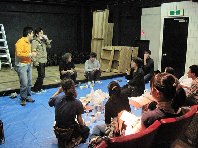 ↑楽日公演終了後はとにかくどんどんバラす。ケガのないように気を付けて。