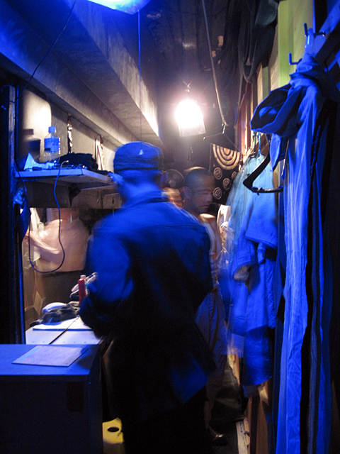 ↑舞台裏の通路兼楽屋。専用の灯りや鏡もあってなかなか居心地良さそう。 |