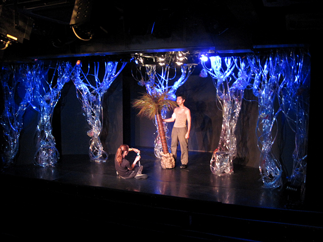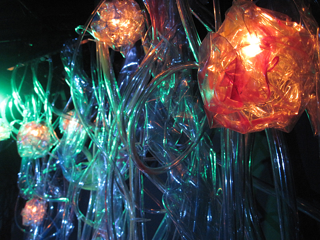 ↑舞台装置のアップ。仕込んだ灯りは果物みたいでおいしそうという声も。 |
