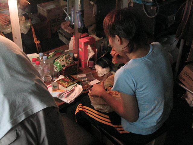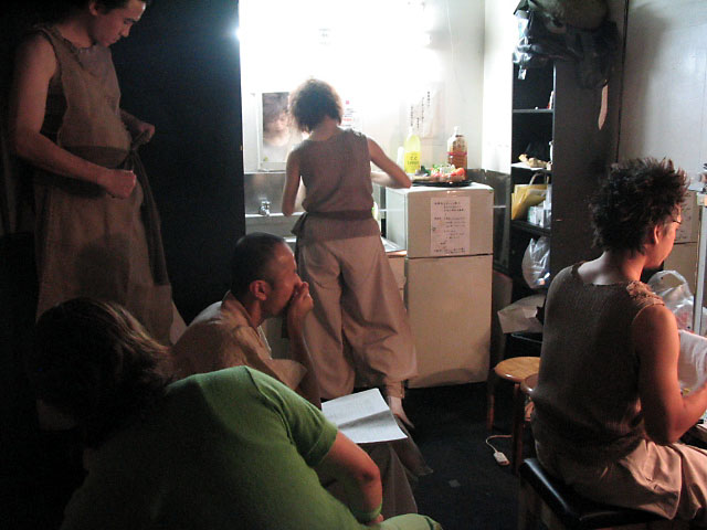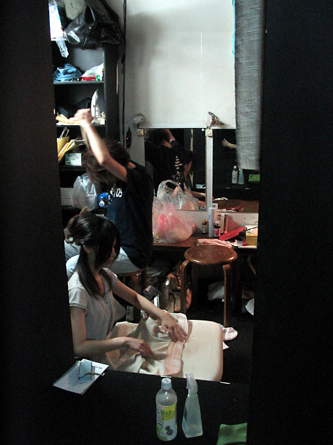 ↑狭い楽屋ではあるけれど本番前に思い思いの時間を過ごす役者達。