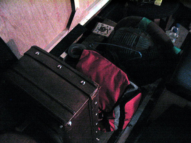 ↑仲良く並んで出番を待つ、(手前から)サツキのトランク、ヤヨイのリュック、カメの甲羅。サツキのトランクは懐かしの第3回公演で主人公・神崎が使用したもの。