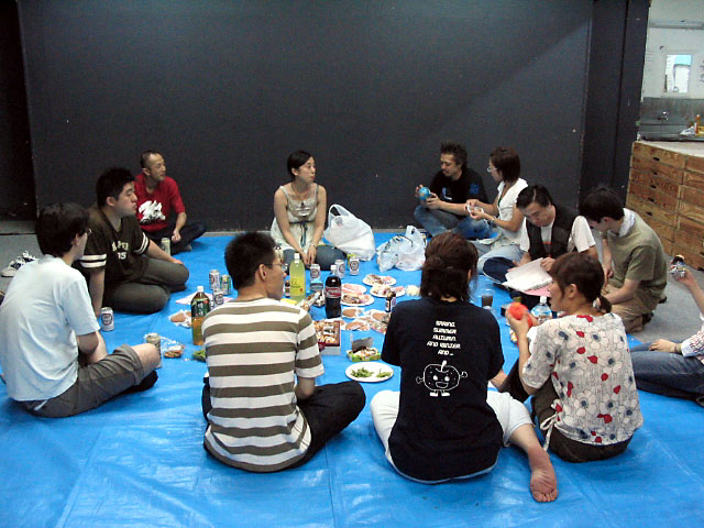 ↑バラシ終了後、お手伝いしてくれた皆さんも一緒に車座になって乾杯。