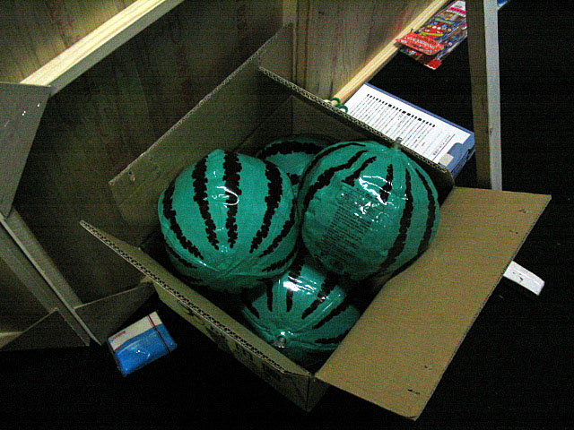 ↑上はソデで待機するスイカ達。弾みすぎないように空気は少し抜き気味。