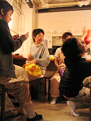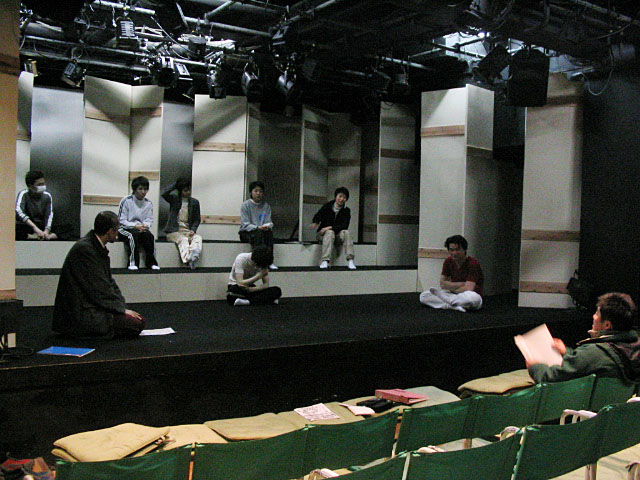 ↑昼公演のダメ出し。観ている方と演っている方の感触が違うこともあり、双方探り合うような緊張感の漂う時間。