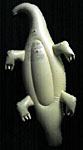 ↑ソデで出番を待つワニ。腹を見せ壁に立て掛けられている様がなんとも情けない。公演終了後は宮島に引き取られ、大事にされているようだ。